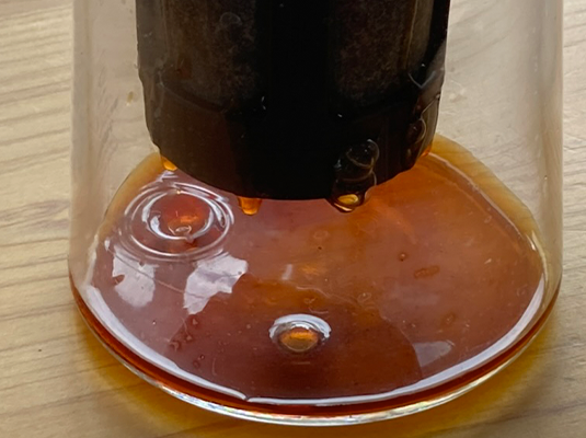 8時間後、ポットからストレーナー(フィルター)を取り出します。出来上がりの量は約550〜570mlです。