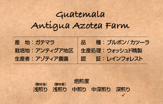アンティグアは、数ある生産地の中でも特に上質な豆を栽培しており、ガテマラコーヒーの代名詞的存在と言われているそうです。